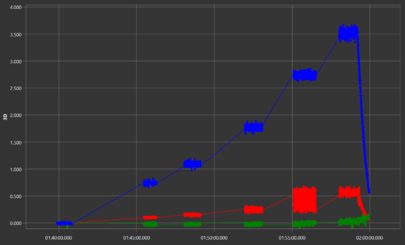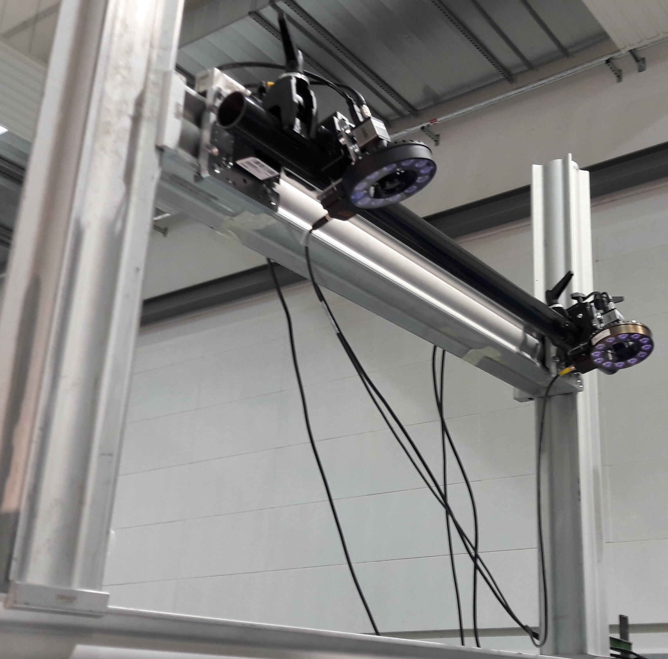 Video photogrammetry requires only 0.1 mm thin retroreflective, circular markers that do not interfere with the flow, making it ideal for the task. The number of markers is unlimited, so that a large number of deformation values can be acquired across the width and length of the profile. The cameras and lighting were placed outside the wind tunnel to avoid obstructing the airflow. The calibration object was shown to the cameras from the within the wind tunnel to compensate for the refraction error caused by the Observation window. Figure 1 shows the flow conditions in the wind tunnel, figure 2 visualizes the green Iaser light of the Particle Image Velocimetry, figure 3 depicts the cameras mounted above the wind tunnel, figure 4 is a schematic representation of the overall structure and figure 5 gives an insight into the interior with the targets on the wing profiles.Result