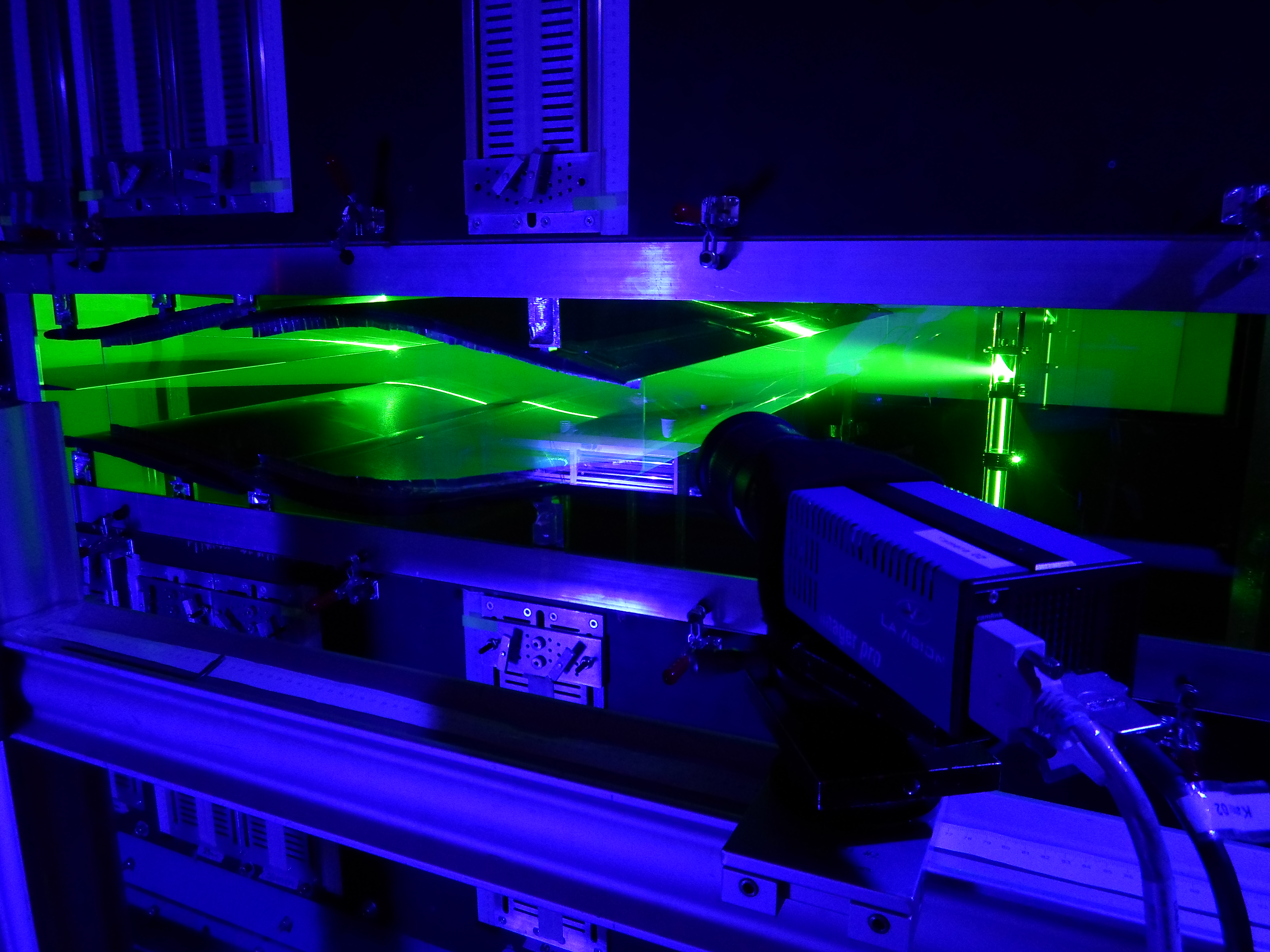 The Institute of Fluid Mechanics at the Technical University of Braunschweig is engaged in a research project studiyng high Iift wing profiles for aviation. The aerodynamics are visualized using particle image velocimetry. The mechanical deformations of the carbon fiber profile due to the aerodynamic forces need alsotobe measured. The measurement method of choice should not influence the air flow within the windtunnel.Procedure